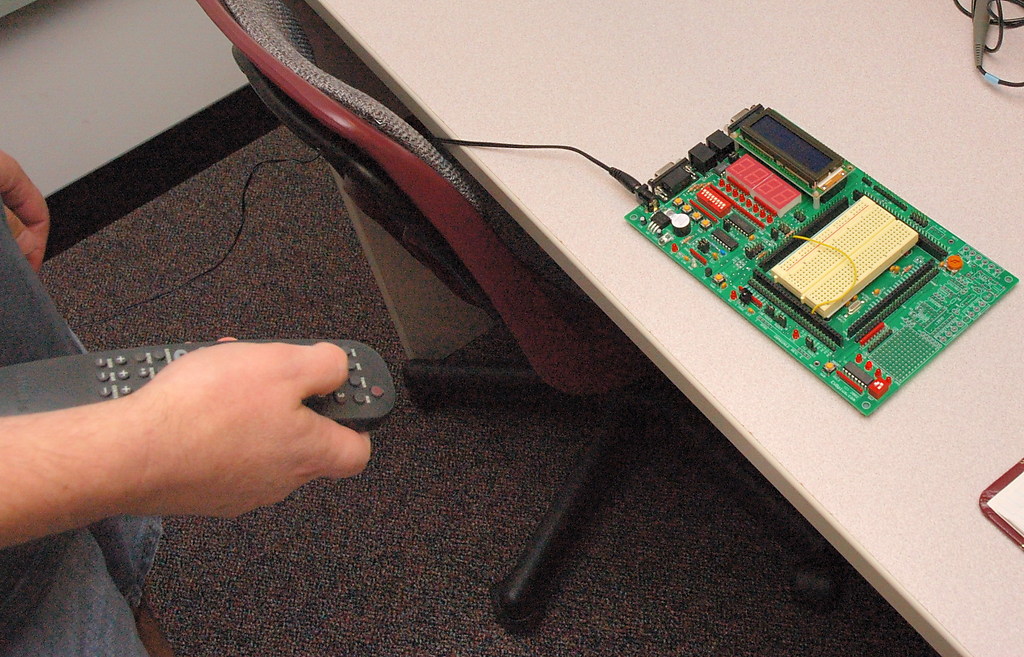 The infrared detector on the Dragon12 is used to detect the infrared light
