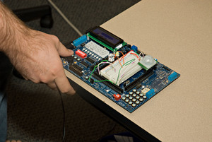 were implemented in code to handle firing, reloading, and hits. The DAC on the Dragon12