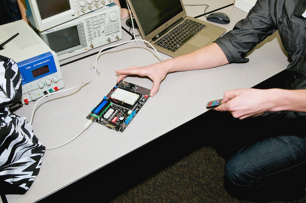 Roman used the IR receiver to control the 7 segment display and RGB LEDs on the Dragon-12 by pressing buttons on a remote control.