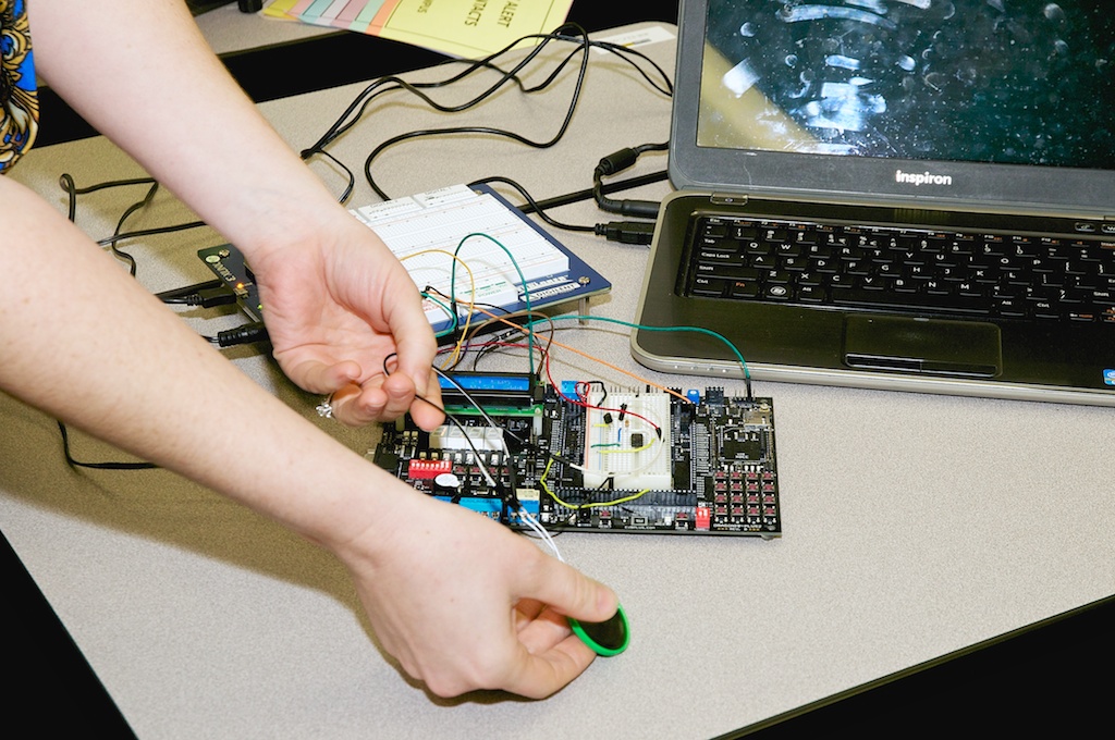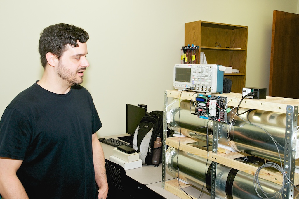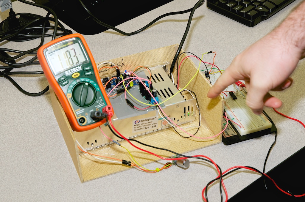"Our project was for measuring various properties of water flowing through a system. We interfaced sensors that measured pH, electroconductivity, and flow speed to our Dragon-12 board using SCI. We also have a relay that injects fluid into the water speed."