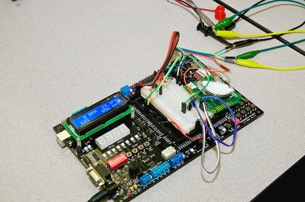 Loren interfaced a SenseAir CO2 sensor to the Dragon-12 board and displayed the CO2 level on the LCD display. The level controls the speed of a ventilation fan.
