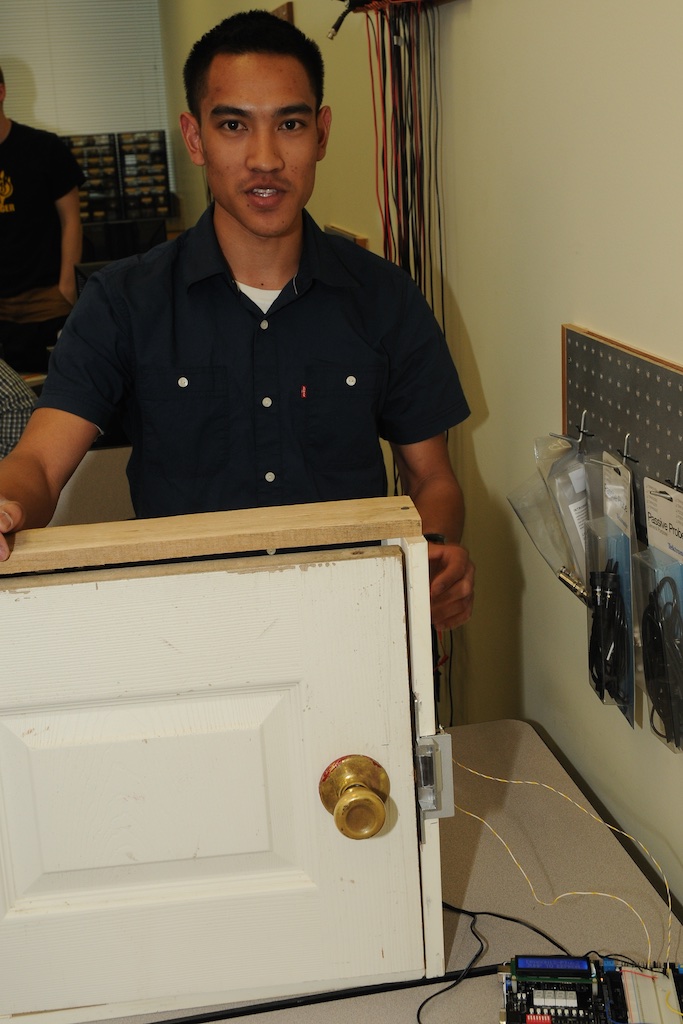 "Upon pressing the correct sequence of numbers, the doorjamb will activate and allow entry to the user."