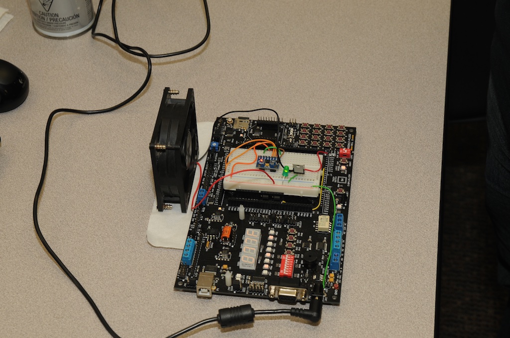 The input device is the Invensense MPU-6050 motion processor unit. The output device is a simple fan.
