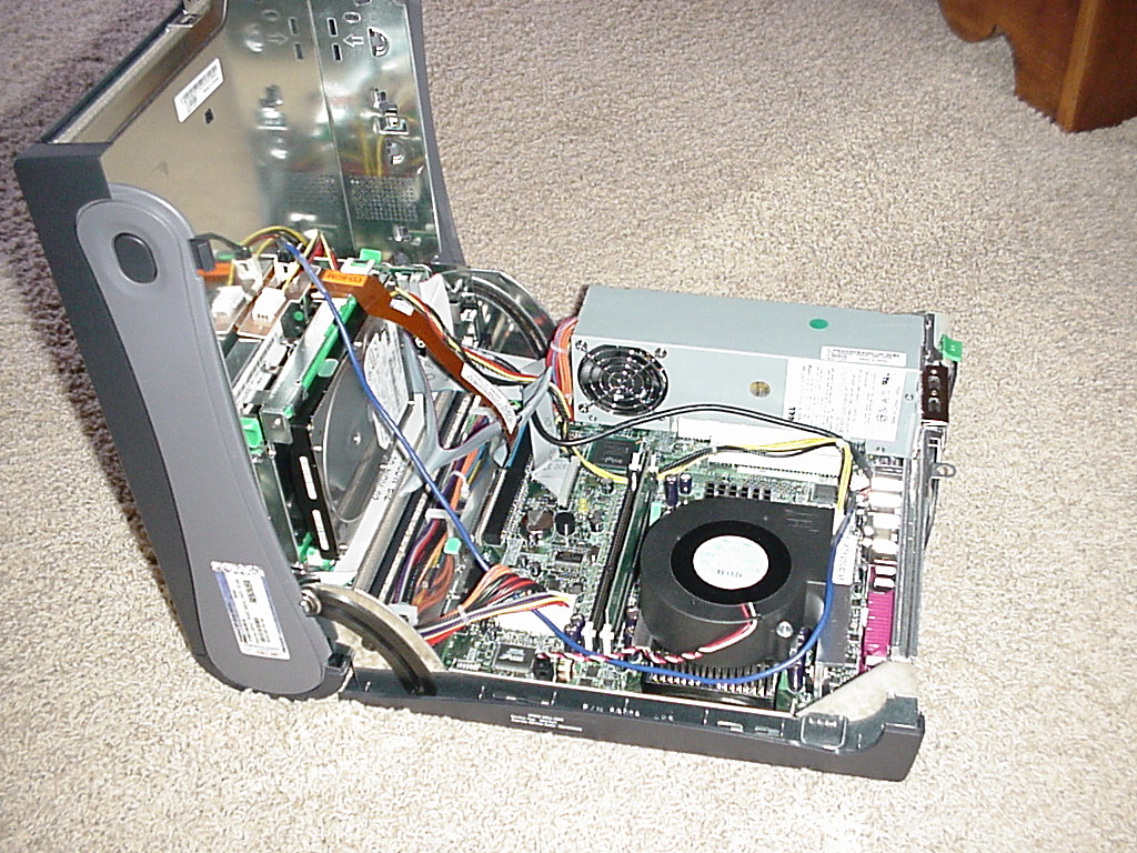 The computer is a Dell Optiplex GX60 in a small-form-factor case which measures roughly 13"x13"x3". It is very quiet and a well built system. This case is basically the same as used in the Dimension 4600C. The Optiplex computers are intended for corporate customers but seemed ideal for this use as it can be and was bought with few peripherals and no software beyond Windows XP. The monitor is a Dell 1504FP UltraSharp(tm) display.