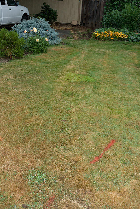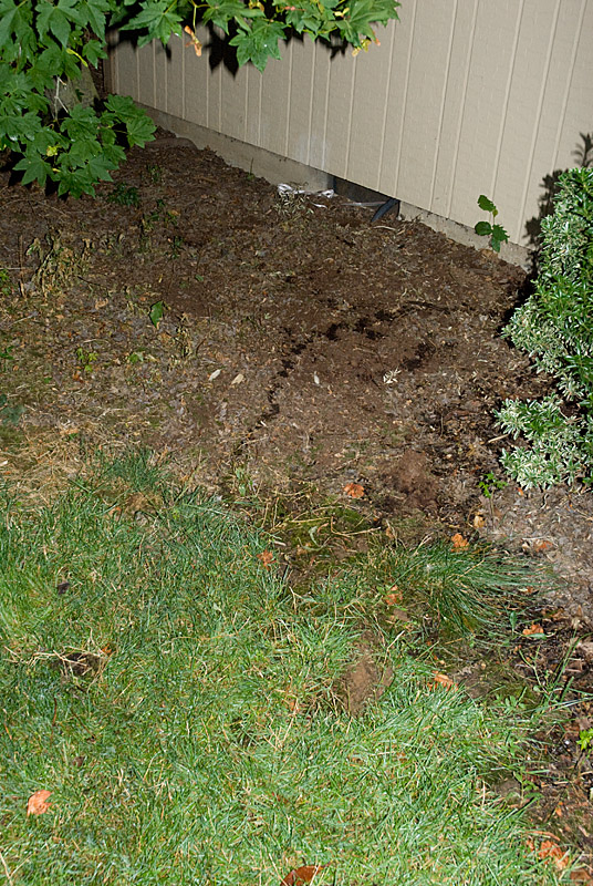 The day before the installation a crew of two men came out to install the fiber from the street to the house. The street termination is on the right of the house but the garage is on the left. So the buried the cable (digging the trench by hand!) from the street...