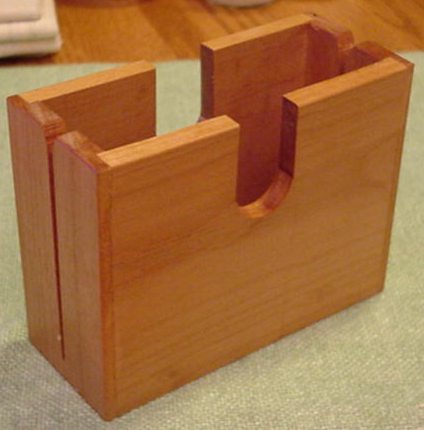 Another project I did for the exercise is this CD Shelf. It is made from a scrap 4x4 fir post, resawn to a 3/8" thickness. The corners are dovetailed, and the back pieces fit into routed notch. The sad thing is that fir doesn't stain well at all.