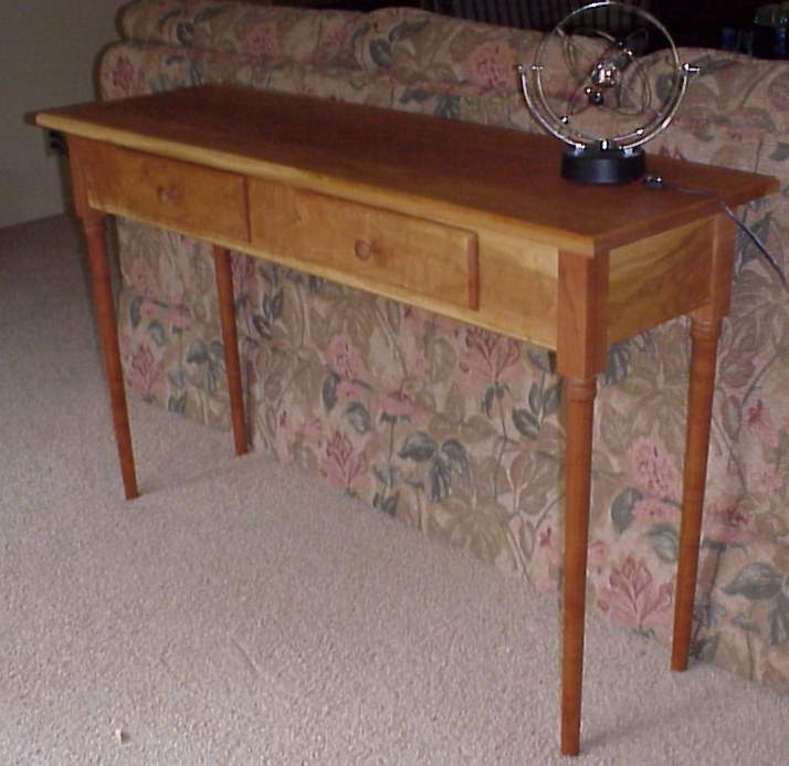 I've made lots of different furniture over the years -- stereo cabinets, children's furniture (small table and chairs, dresser, toy box), lots of bookshelves and racks, video game cabinet, various storage cabinets, jewelry displays, drawer and closet organizers... The finer stuff is mostly in oak, with some early pieces in walnut and redwood, and some recent work in maple. Next major project is an entertainment center in cherry, however I'm making molding at the moment. This past Spring I completed a cherry end table with a hidden drawer (the front of the table is actually a full width drawer), and a modified version of Norm Abram's Library Table.
