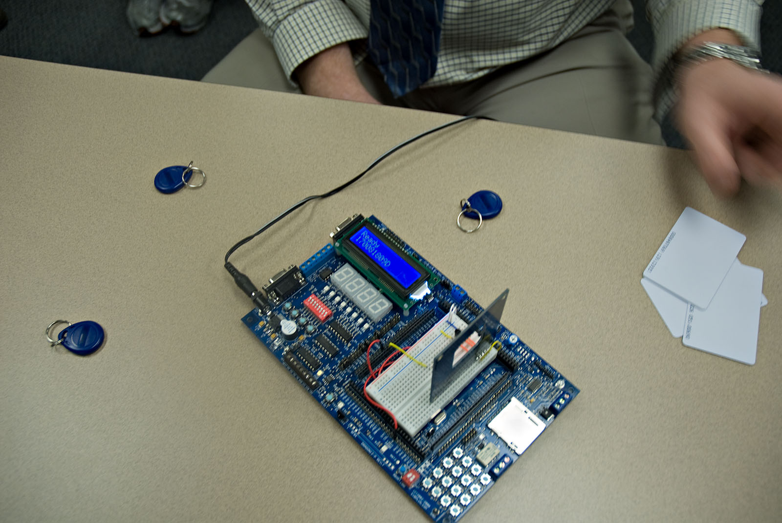 A motion detector is interfaced to the Dragon-12 and lights up a
