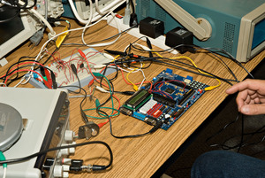 were implemented in code to handle firing, reloading, and hits. The DAC on the Dragon12