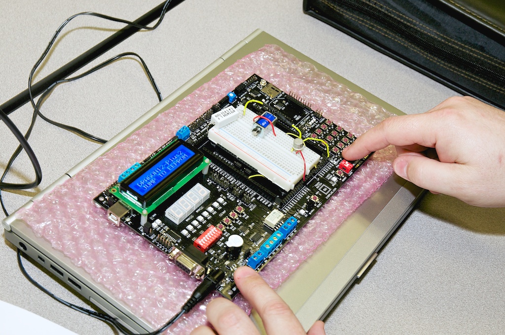 Loren interfaced a SenseAir CO2 sensor to the Dragon-12 board and displayed the CO2 level on the LCD display. The level controls the speed of a ventilation fan.