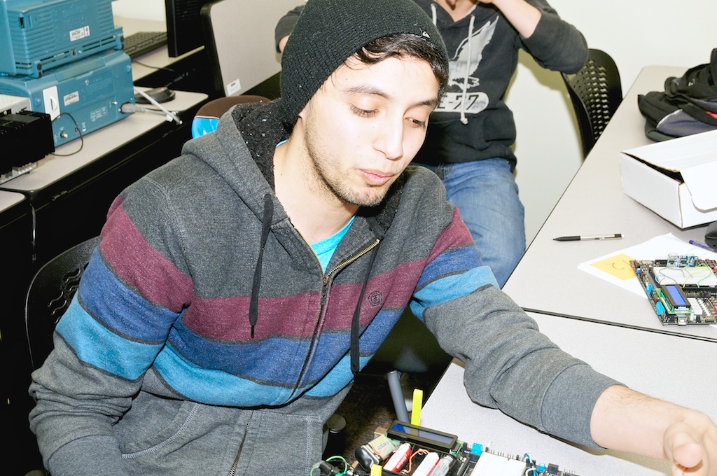 "Our project was for measuring various properties of water flowing through a system. We interfaced sensors that measured pH, electroconductivity, and flow speed to our Dragon-12 board using SCI. We also have a relay that injects fluid into the water speed."