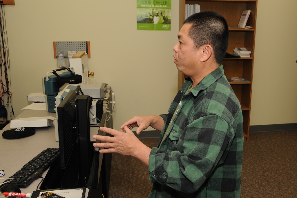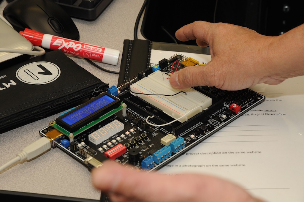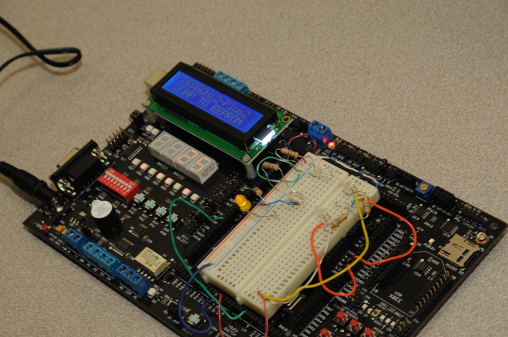 "The assignment is comprised of an audio input and the resulting output displays the fractional volume level on a 14-segment LED display."