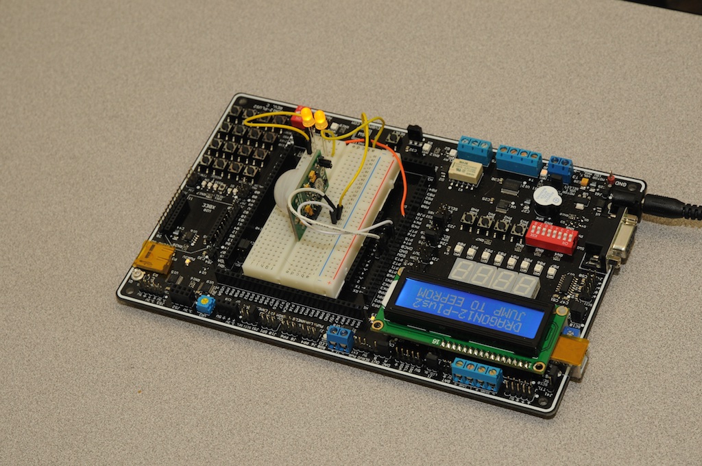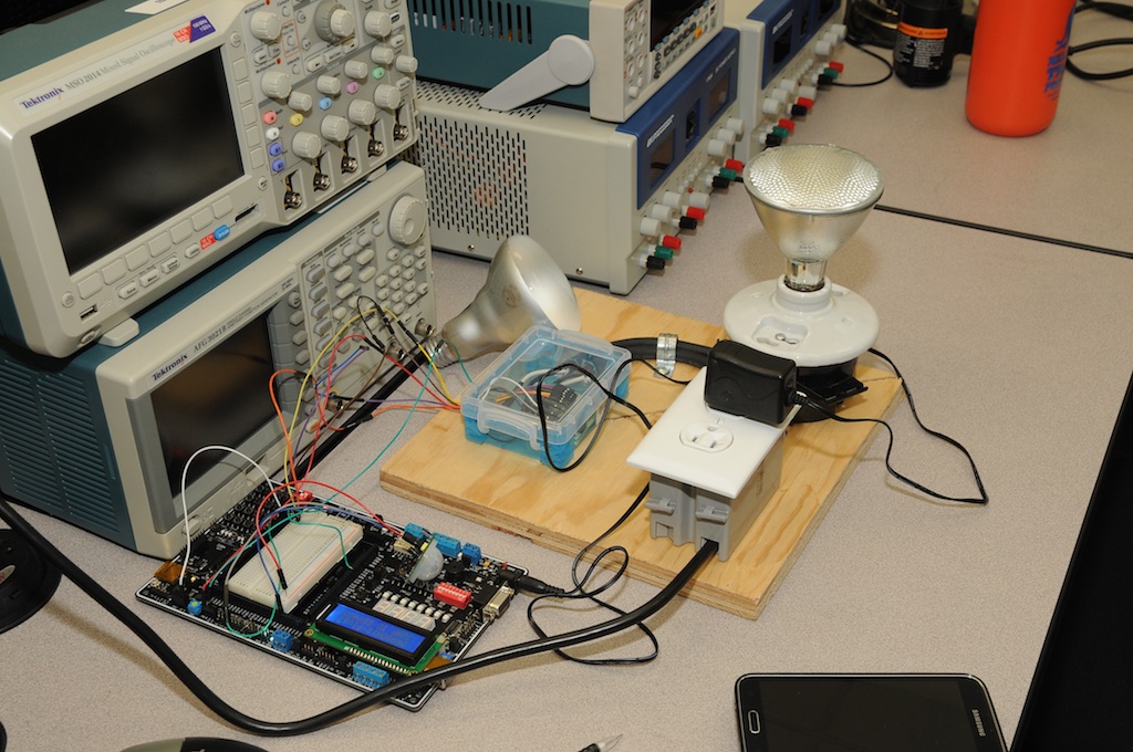 "The project is a daylight harvester, a device that will read ambient light and adjust an externally connected incandescent lamp based on the need for more light."